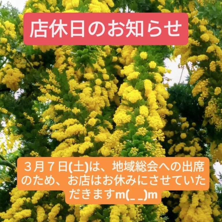 3月7日は地域総会の出席のため、お店はお休みにさせていただきます。